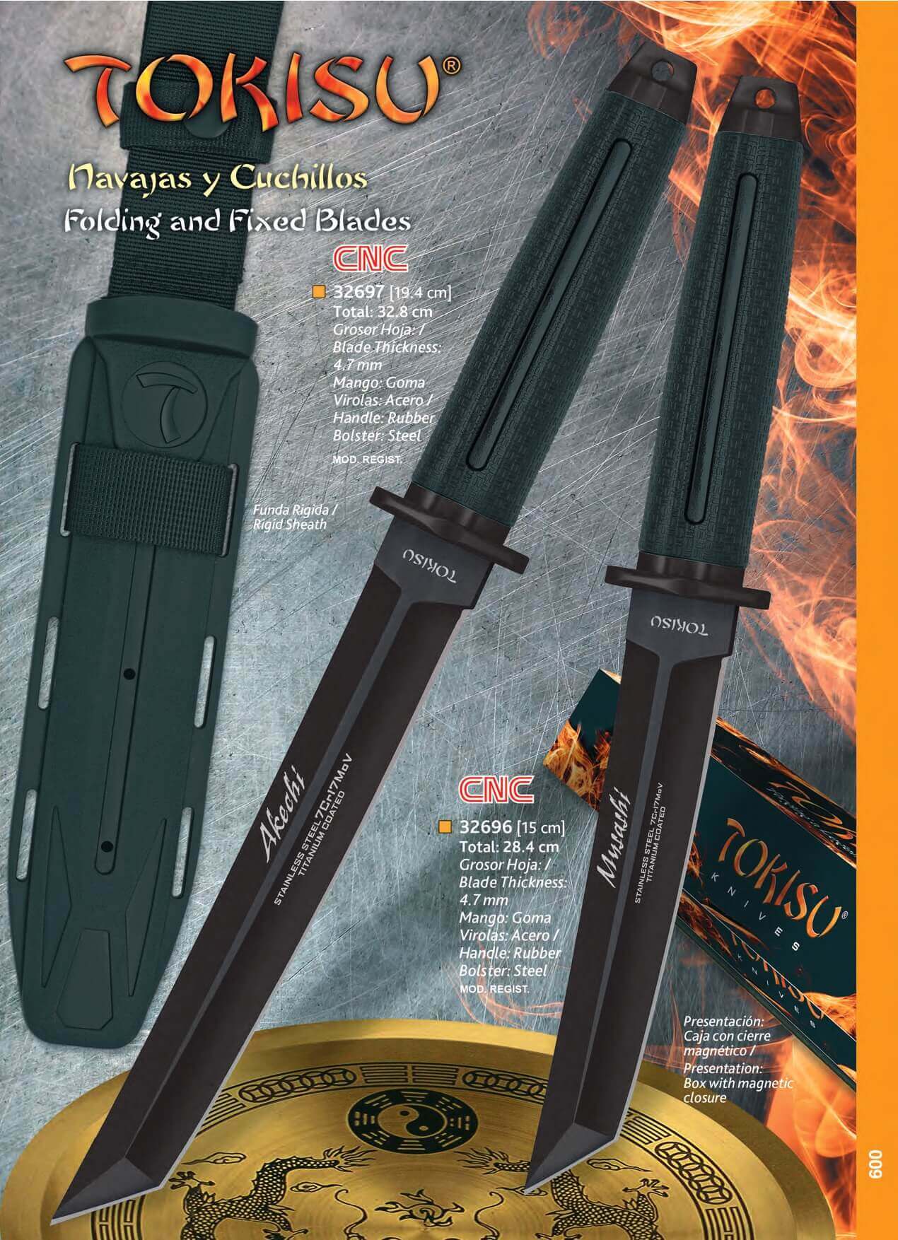 Coltello tattico Tokisu Musashi con manico in gomma nera e lama T...