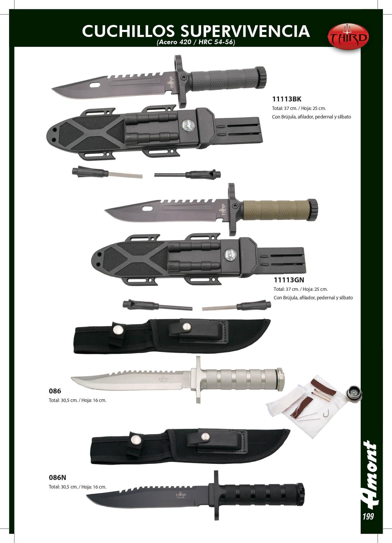 Coltelli da sopravvivenza. Lama: acciaio 420. HRC 54-56. 086 e 086N Lunghezza del foglio: 16 cm. Lunghezza totale: 30,5 cm.