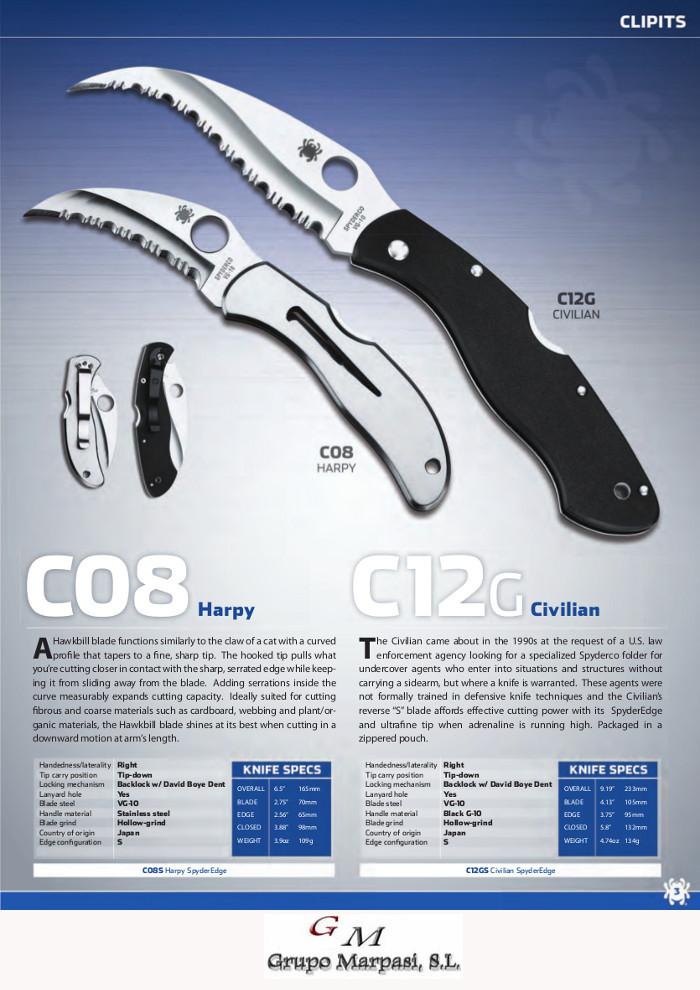 C08S - Coltello da tasca Harpy con una lama gancio. Lama stile SypderEdge.C12GS - I coltelli Spyderco Civilian sono stati inventati negli anni '90 per gli agenti segreti erano disarmati. Il coltello era la garanzia.