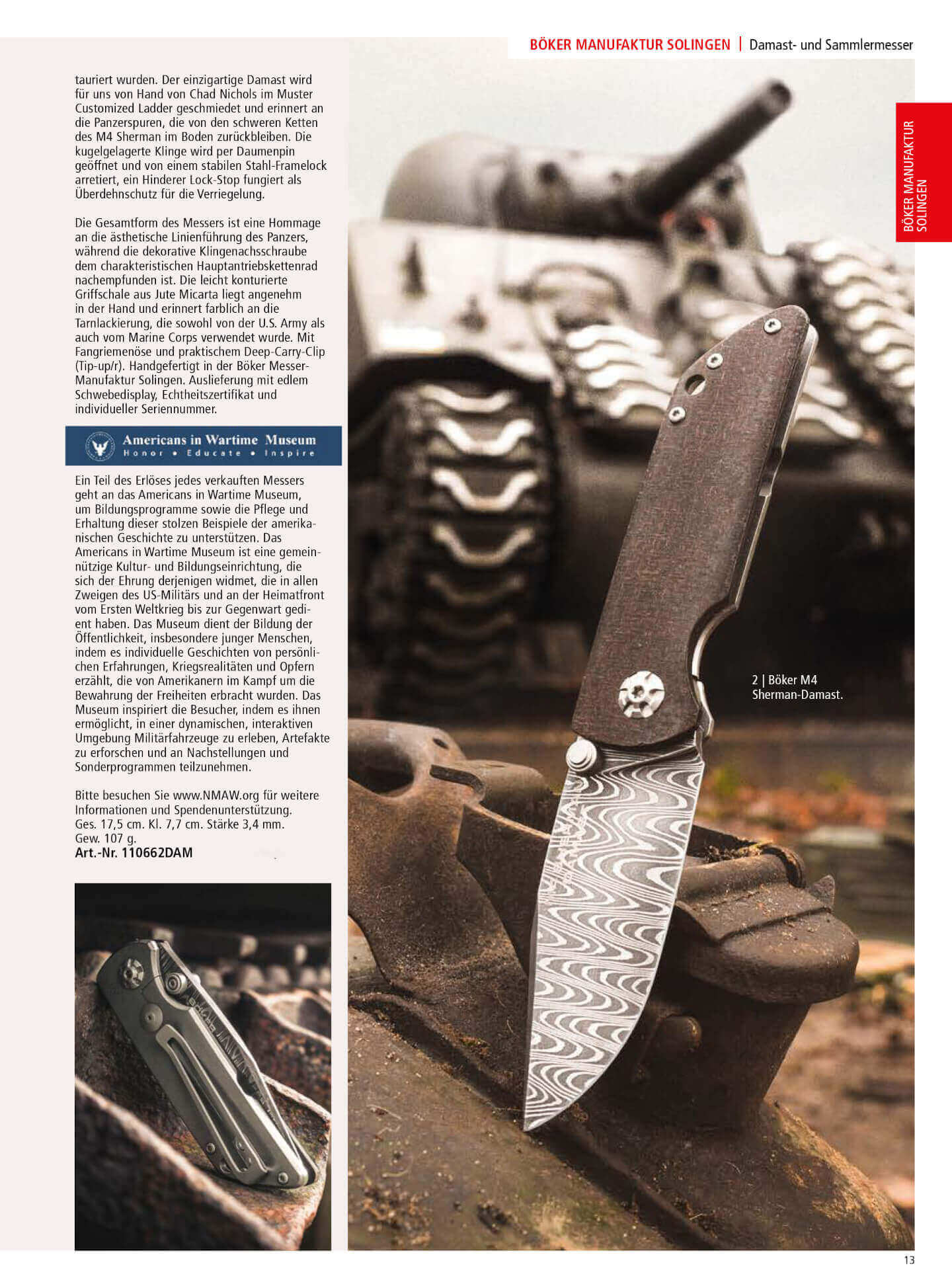 Il coltello M4 Sherman è un coltello robusto e compatto con lama in acciaio damasco da 6,2 cm e manico in micarta. Un coltello da collezione prodotto a Solingen.