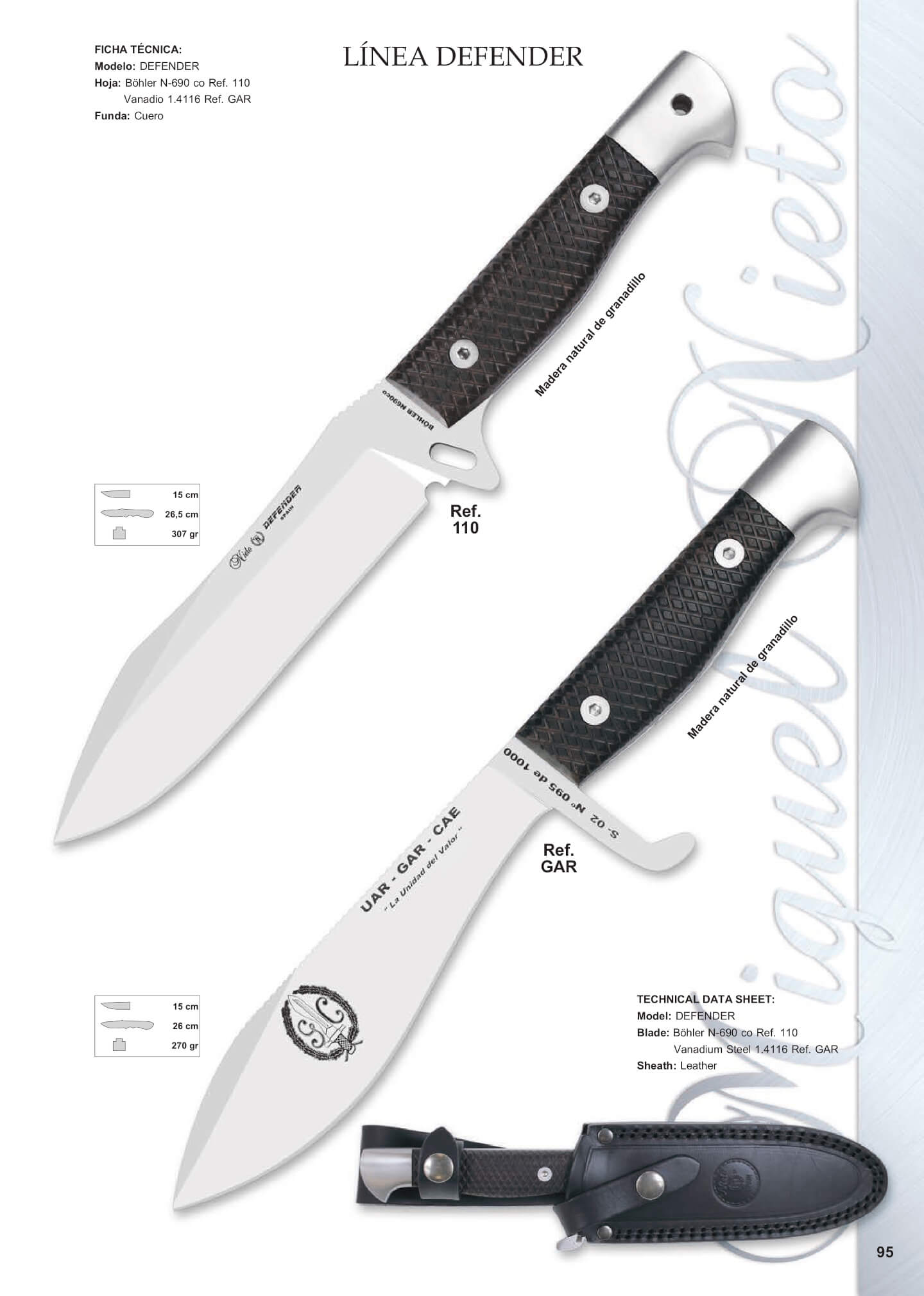 Coltelli Nieto Defender.Coltelli militari monopezzo con lama lunga 15 cm e fodero in pelle nera.