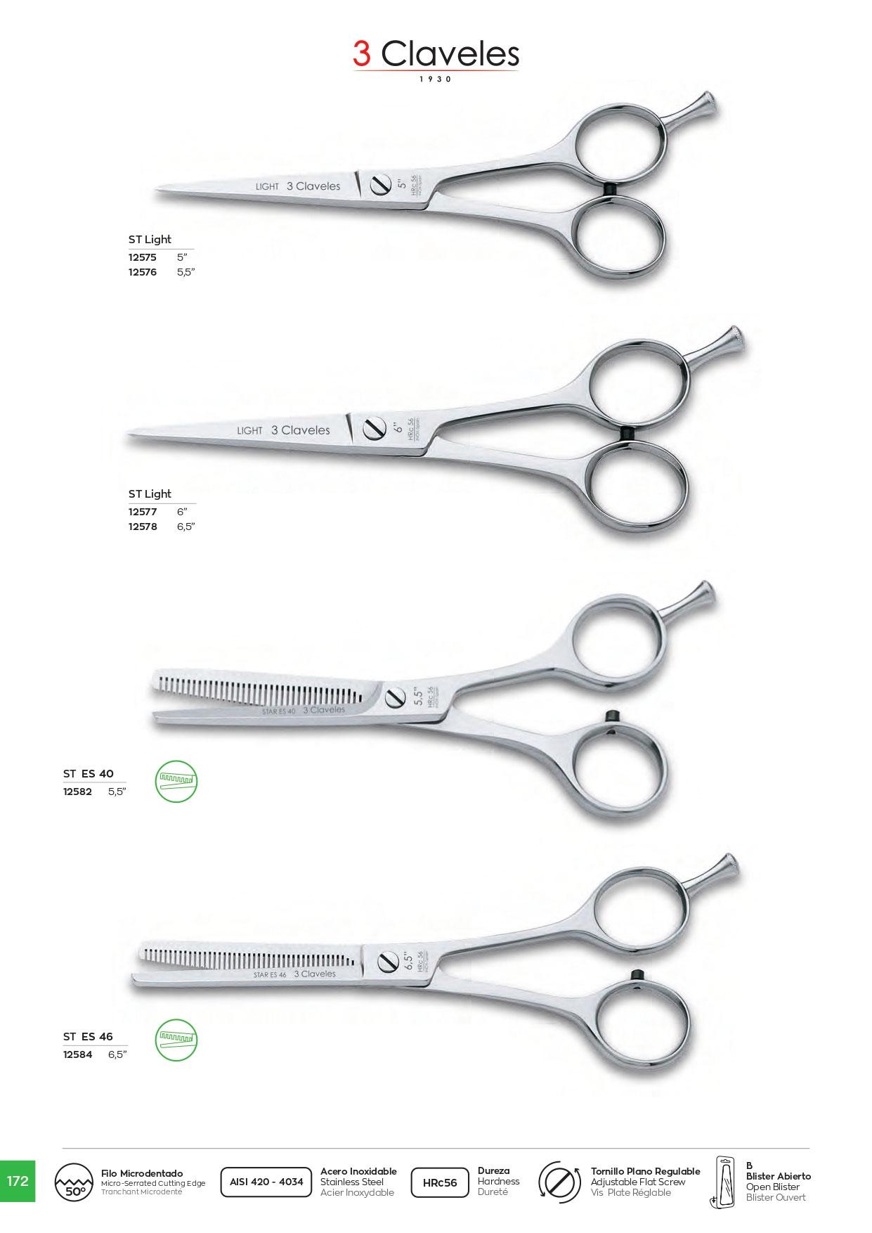 Professionale forbici inox 420-4034. Durezza HRc 56, bordo Microdent.