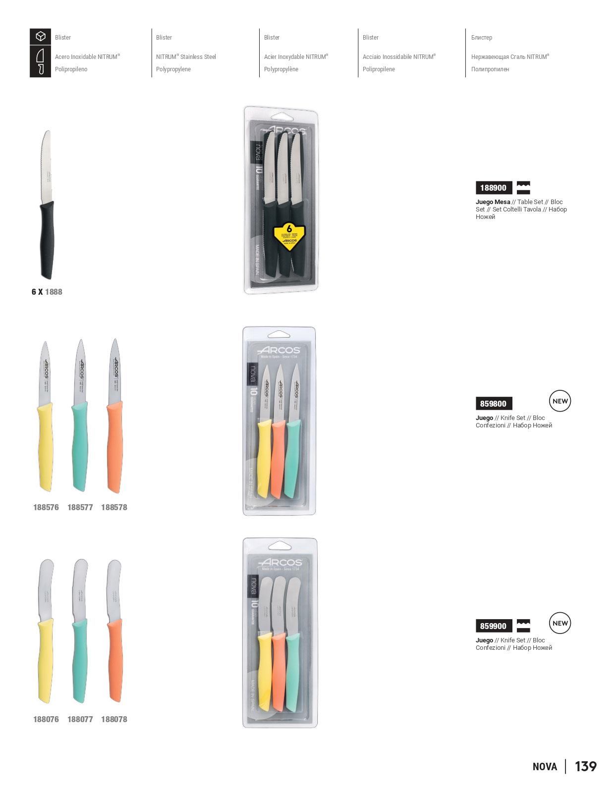 Set di coltelli da tavola di diversi modelli. Lama in acciaio inossidabile NITRUM. Manico in polipropilene