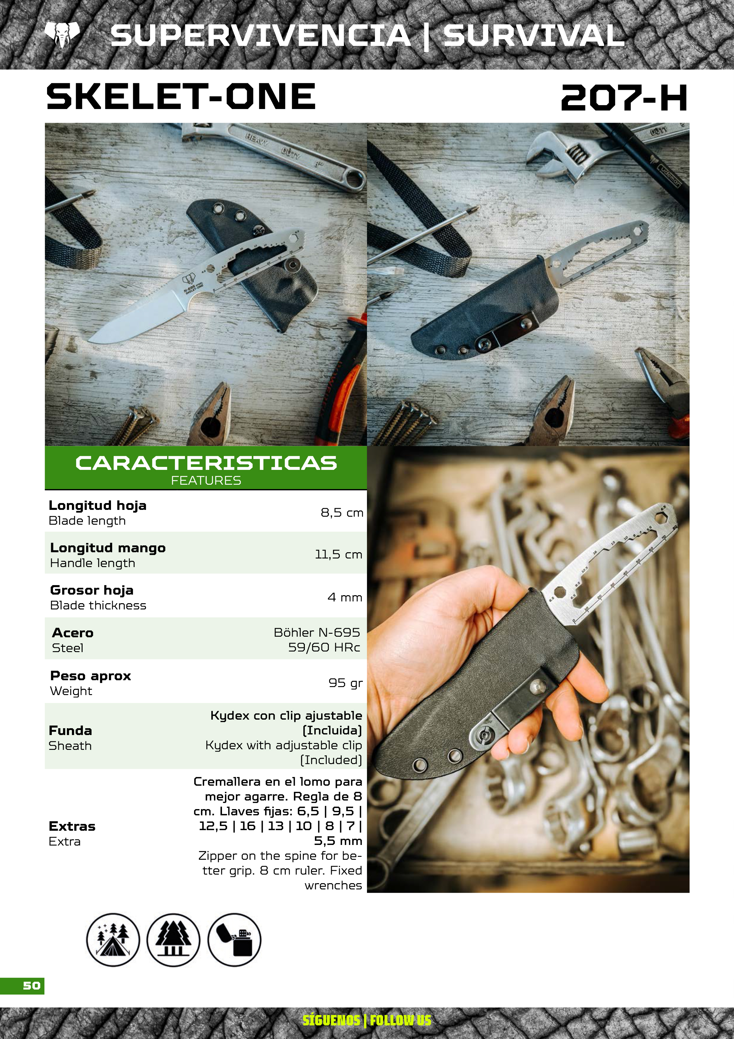 Cudeman Skelet-one Survival Knife con lama da 8,50 cm in acciaio BÖHLER N695. Include fodero in kydex nero.