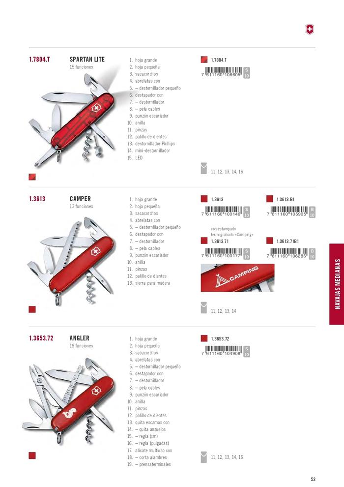Lamiera di grandi dimensioni, cavatappi, apriscatole, cacciavite, spelafili, cavatappi, forbici, gancio multiuso, limetta, anello chiave, pinzette, stuzzicadenti, penna, pin.