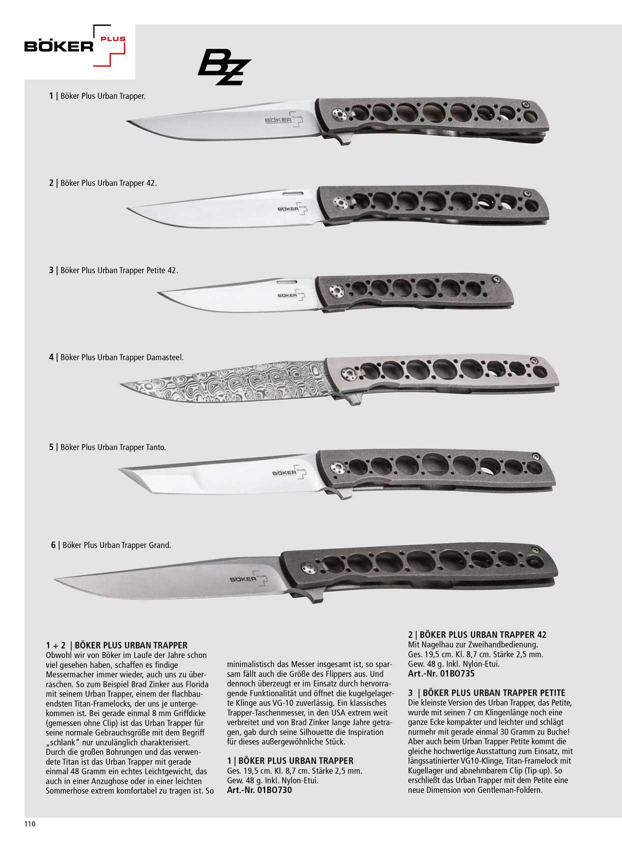 01BO721 Urban Trapper Tanto Gewicht: 50 gr. VG-10 Klinge, Titangriff. Gesamtlänge: 18,9 cm. Klingenlänge: 8,6 cm. Klingendicke: 2,4 mm Manuelle Öffnung Verriegelung: Linerlock.