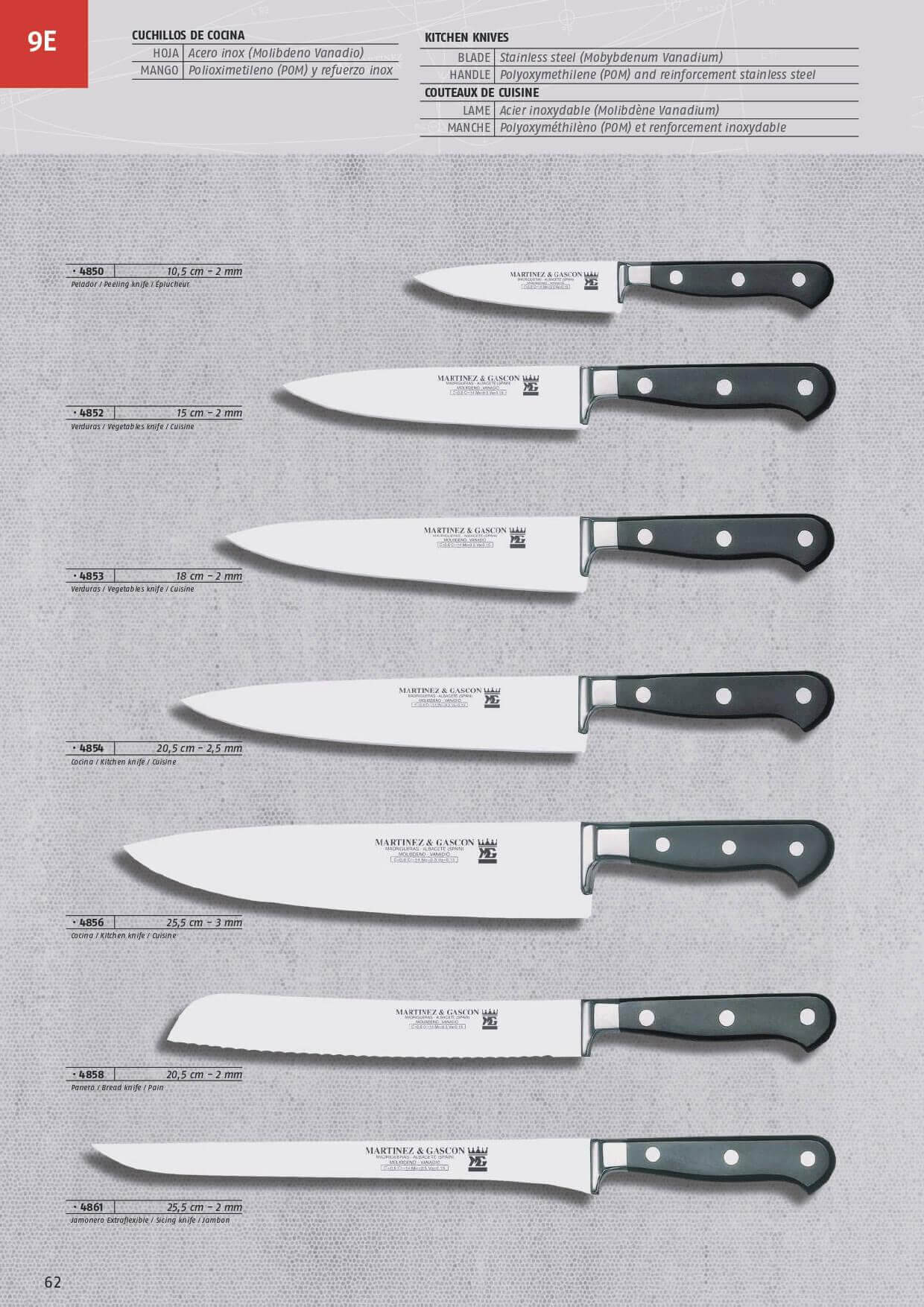 Küchenmesser. Mit Polyoxymethylengriffen, MoVa-Stahlklingen und Edelstahlverstärkung.