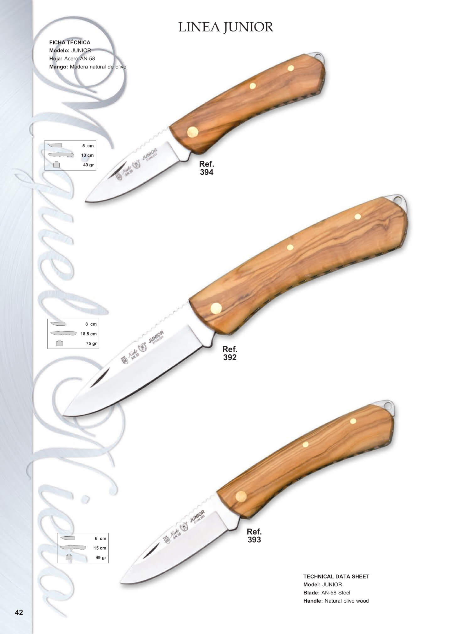 Griff: natürliches Olivenholz. Länge des Blattes: 6 cm. Gesamtlänge: 15 cm. Gewicht: 49 grs.