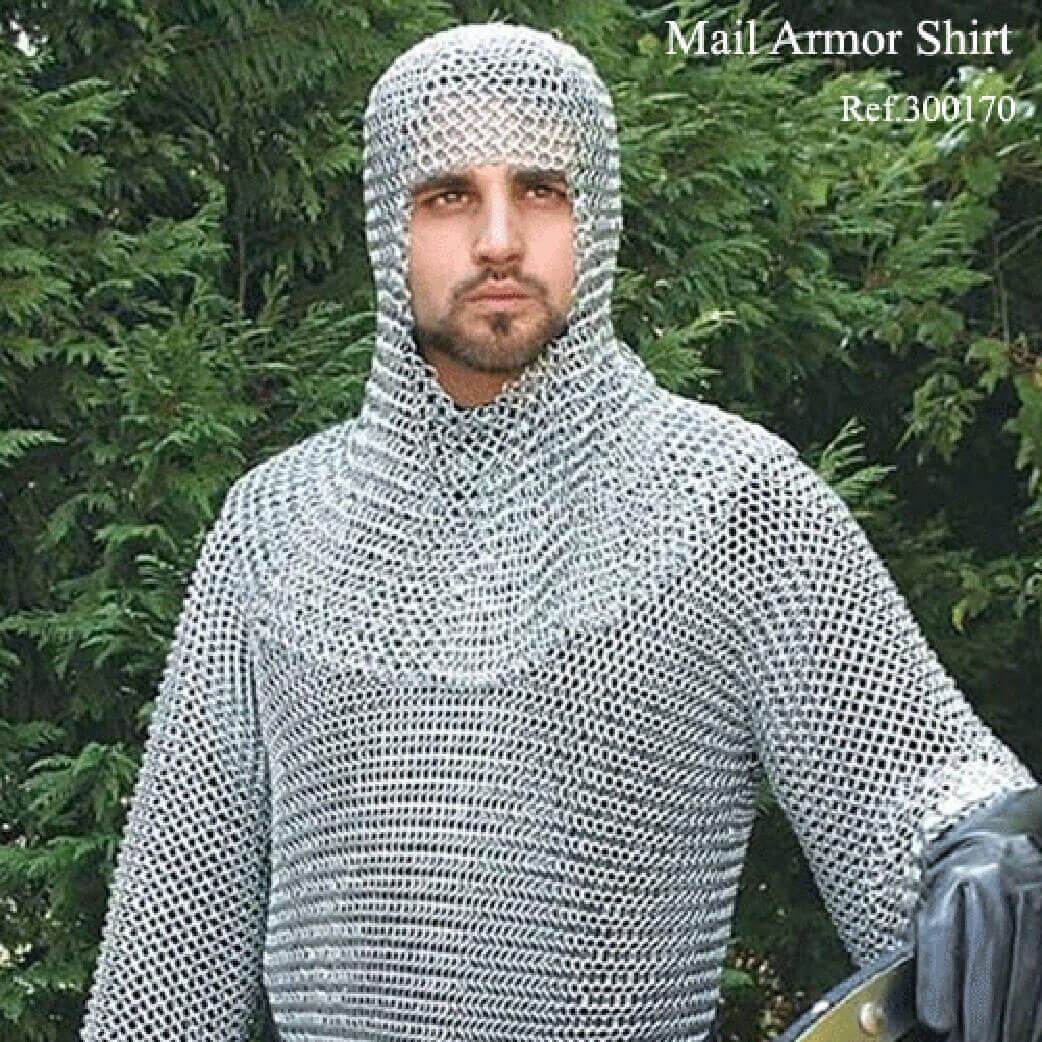 Seit den Kelten von 300 v. Bis zum achtzehnten Jahrhundert in Asien war das Kettenhemd eines der wertvollsten Gegenstände, die ein Krieger besitzen konnte. Der "Feind der Schwerter" hat den Namen "mail" wahrscheinlich von der lateinischen "macula" abgeleitet, was "network" bedeutet. Dieses Shirt hat 16-Gauge-Glieder im "internationalen" Muster, mit 4 Gliedern bis zu einem Fünftel, was allen europäischen Maschenabmessungen gemeinsam ist. Nachgebildet aus Beispielen in Museen und Privatsammlungen.