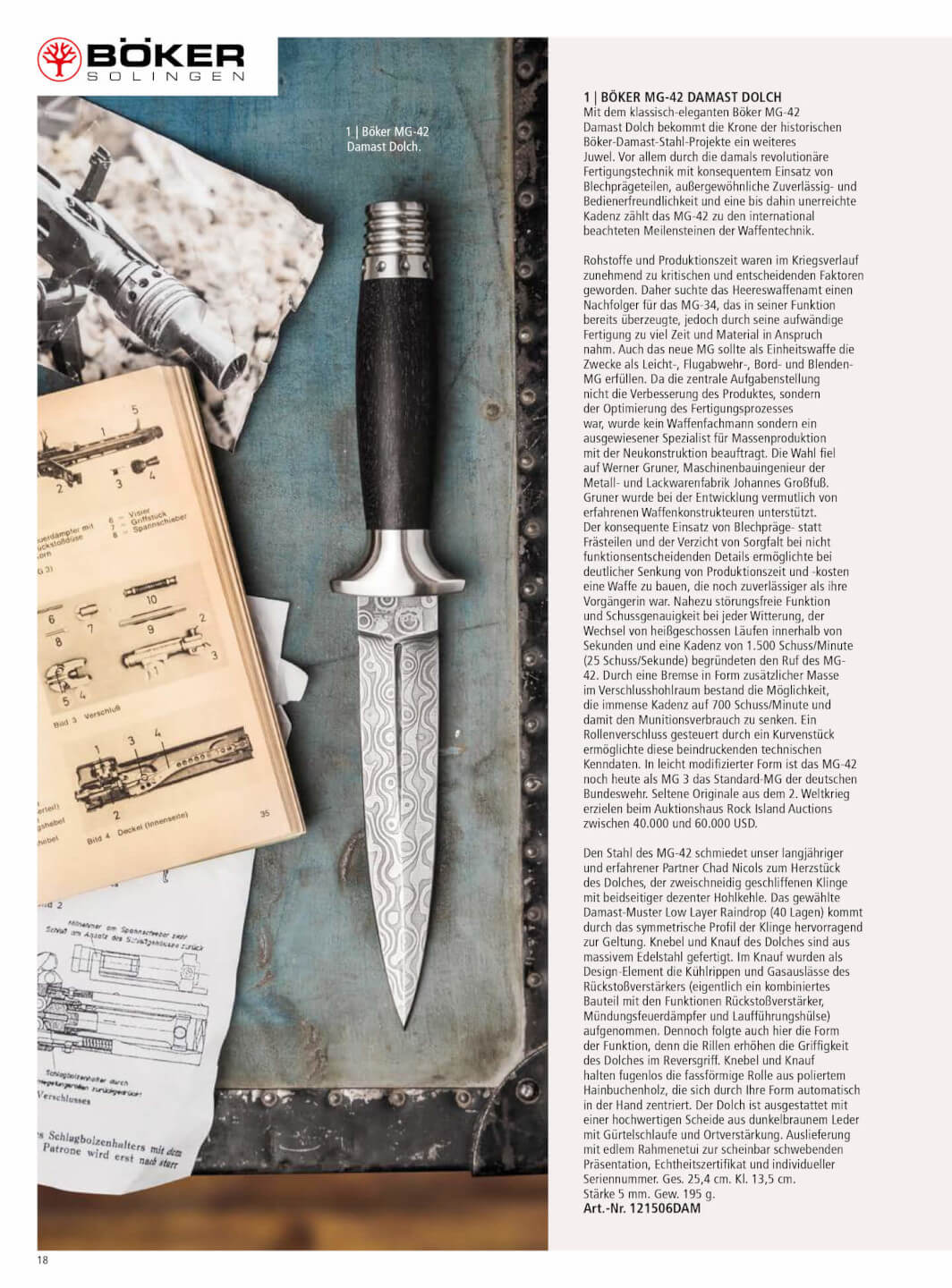 Böker Damast Dolch MG-42 Sammeldolch mit Hainbuchenholzgriff.Damaskus-Sonderedition mit individueller Seriennummer.