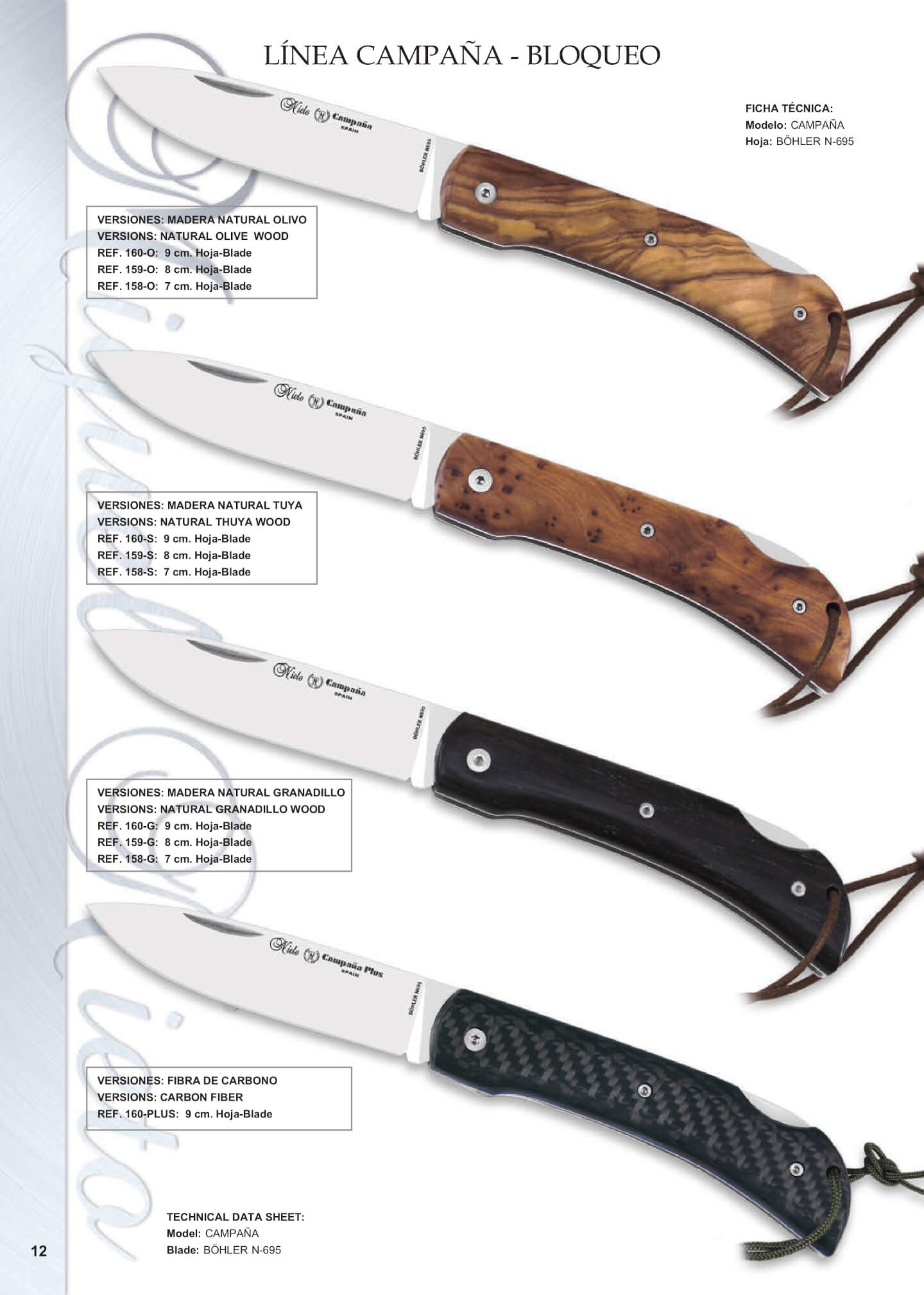 Die Faltmesser "Nieto Kampagne" werden in Spanien von Miguel Nieto entworfen . Diese praktischen und passenden Faltmesser werden mit dem Stahl BÖHLER N-695, hergestellt, der aufgrund seiner Qualität und Härte ein großes Ansehen hat. Sein elegantes Design und die Vielfalt der Größen macht dieses Falten zum besten Partner für die Outdoor-Scapes, aber auch für die täglichen Aufgaben.