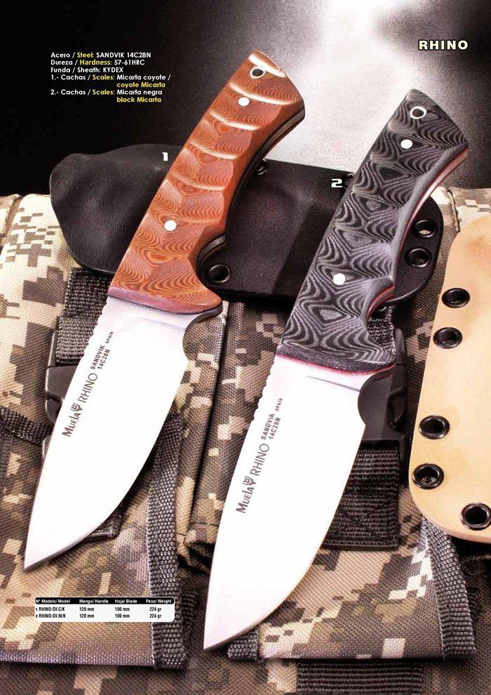 Flachangel Messer Muela Rhino 14C28N Sandvik-Stahl mit Micarta Griff und Kydexscheide enthalten.