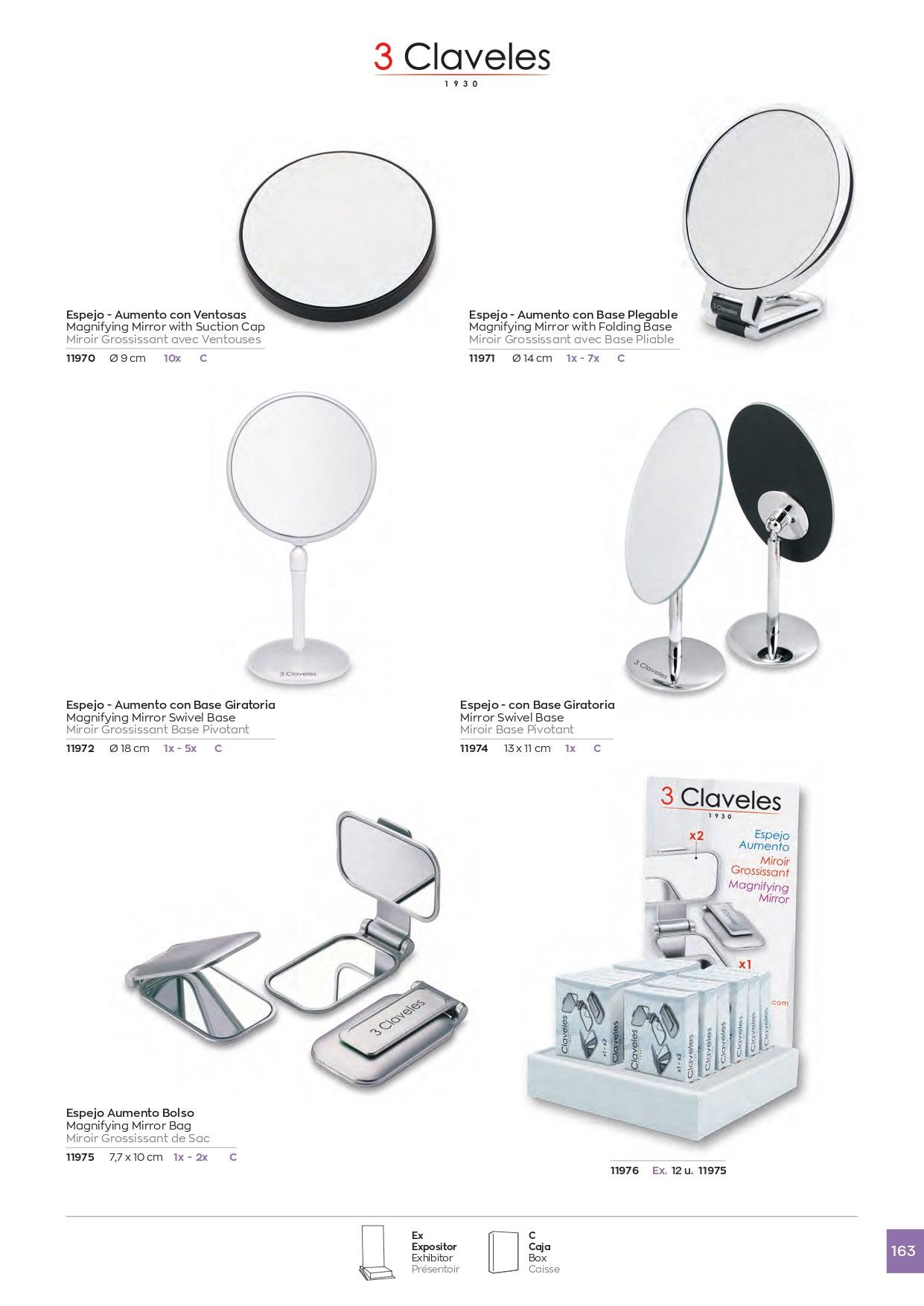 Vergrößerungsspiegel mit fester oder klappbarer Basis.