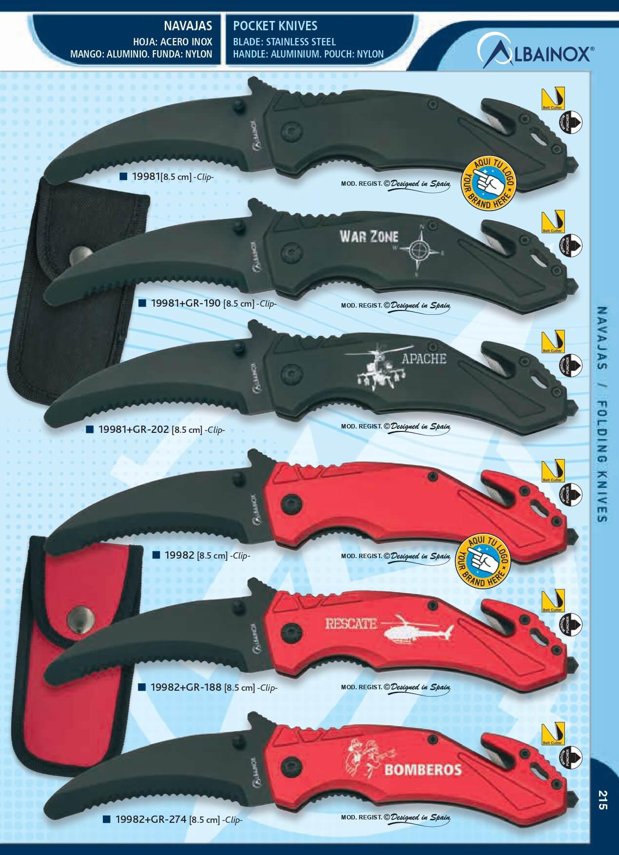 Albainox taktisches Taschenmesser mit rotem Aluminiumgriff, Nylon...