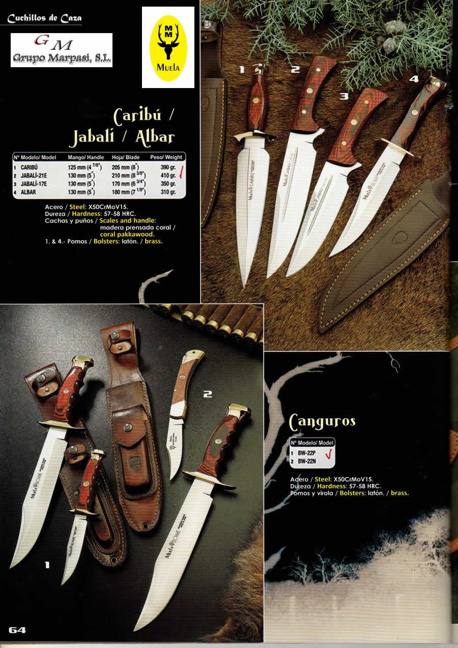 Muela Caribu Jagdmesser mit gepresstem Korallenholzgriff und Dopp...