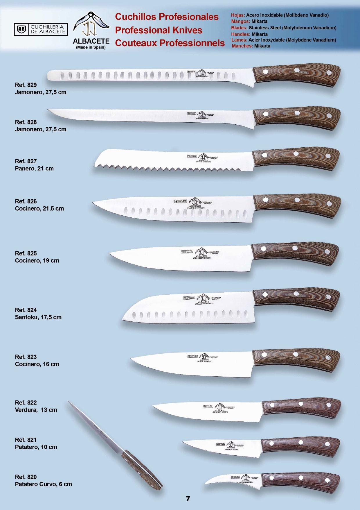 Profi-Messer mit Klinge aus Molybdän-Vanadio-Edelstahl und Mikarta-Sandgriffen.