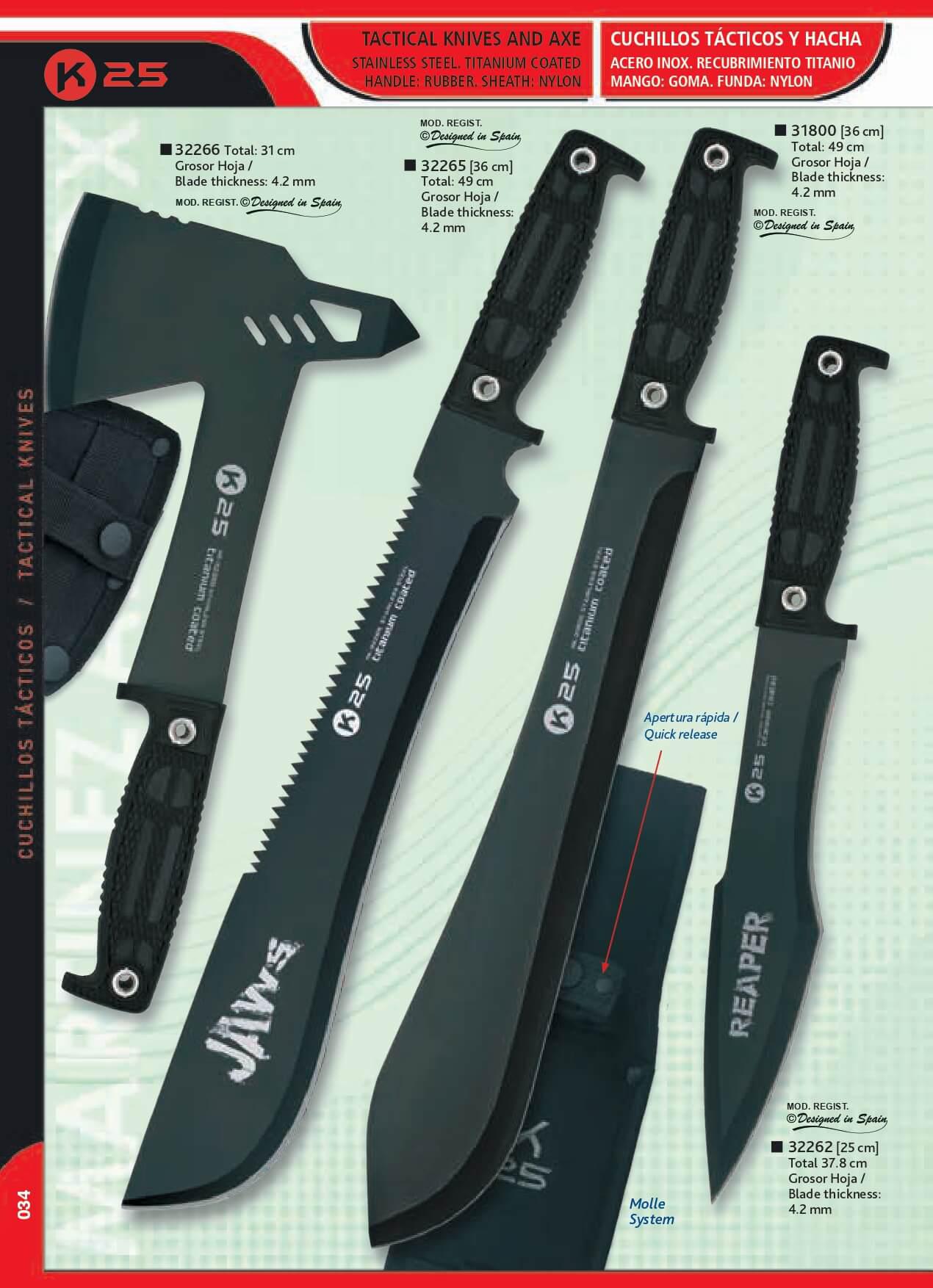 K25 REAPER Messer mit Gummigriff, 4,3 mm dicker Klinge und 25 cm ...